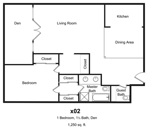Individual Apartments' Floor Plans and Pictures1 Bedroom, 1½ Baths, Den